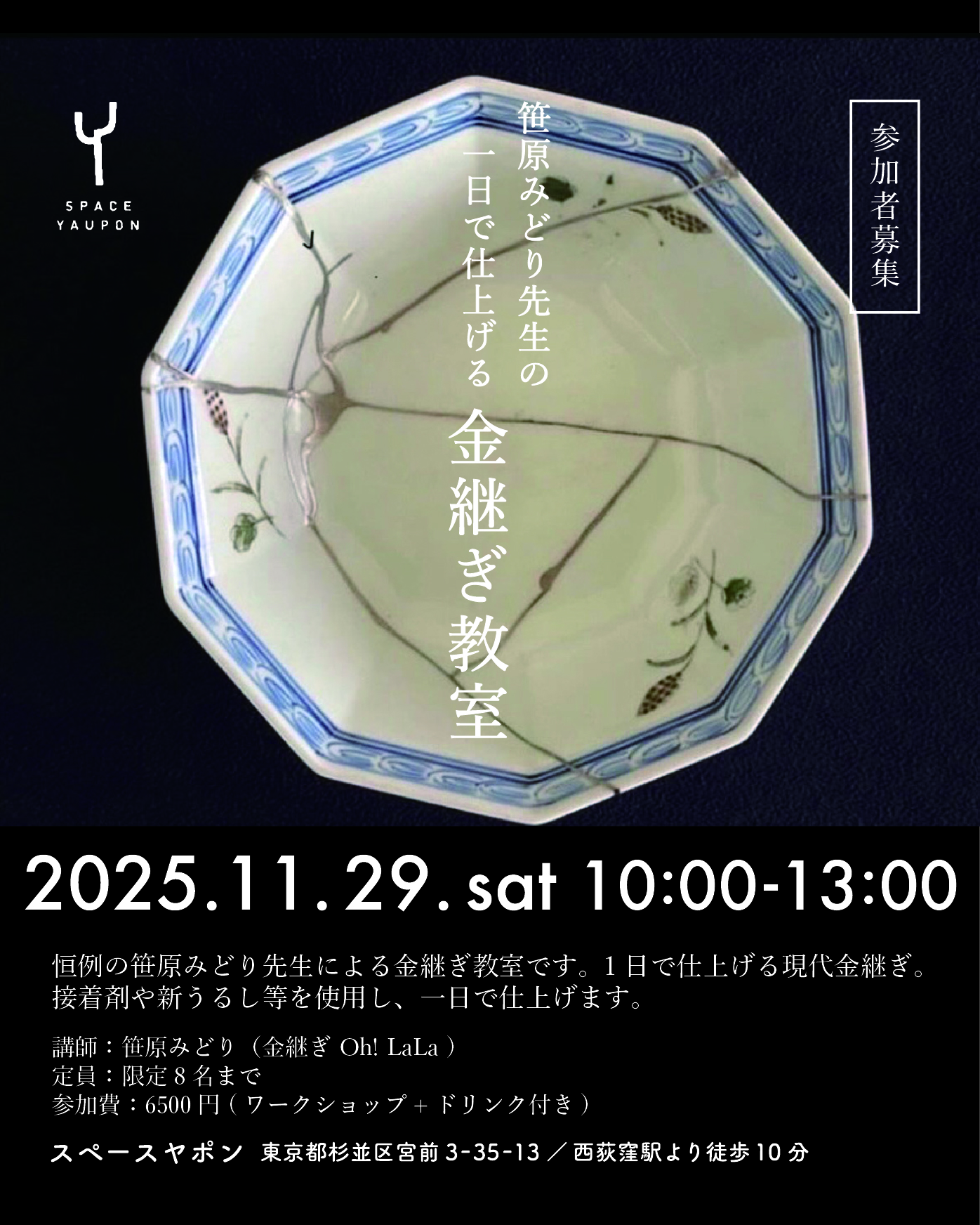 2026 笹原みどり先生の一日で仕上げる 金継ぎ教室